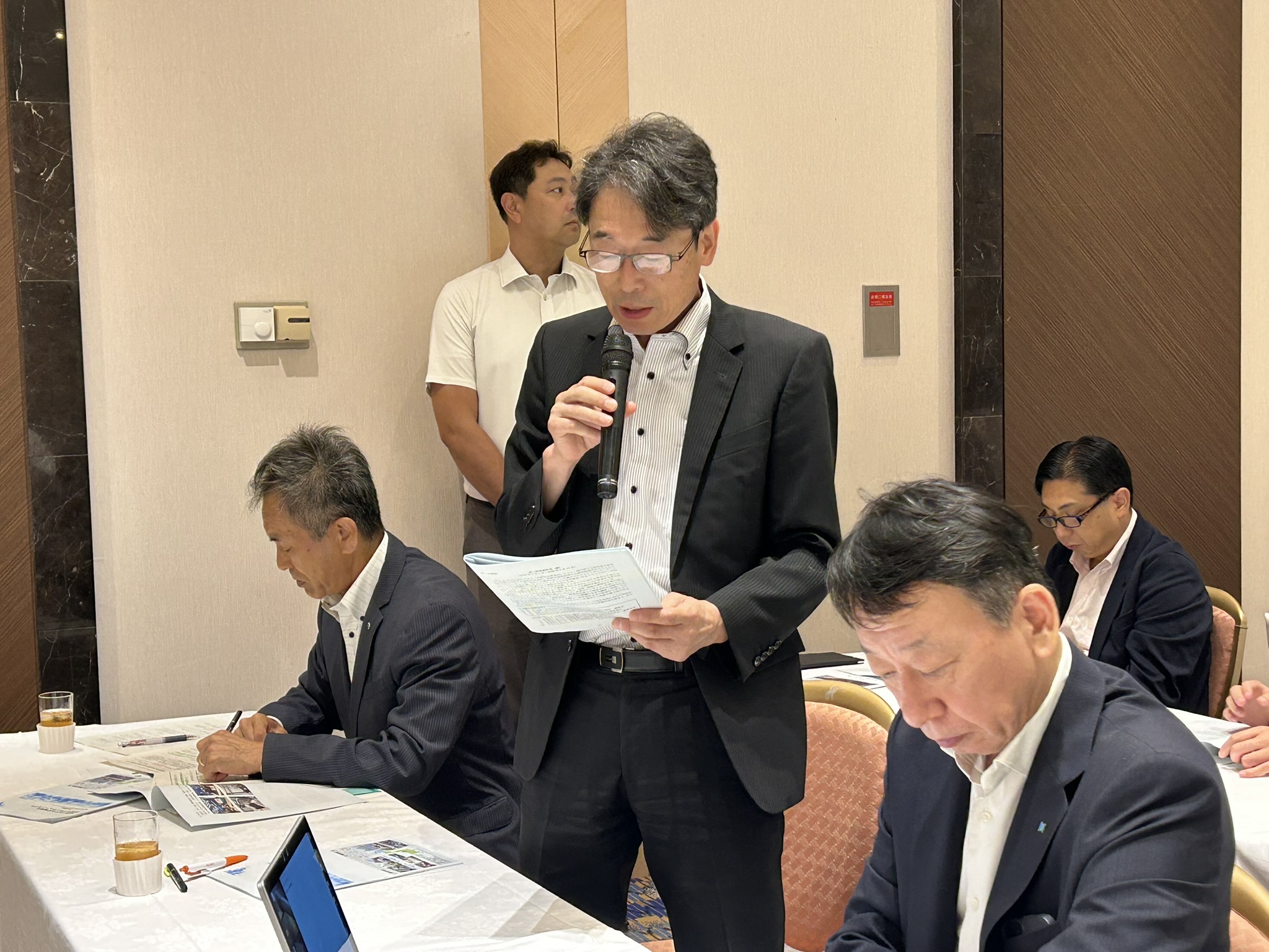 新出部長から最初に報告されたのは、7月に秋田市が経済産業省へ提出した要望活動の内容です。沼谷秋田市長とともに東京を訪問し、関係各課の課長・室長が一堂に会する形で効率的かつ実のある意見交換が行われました。