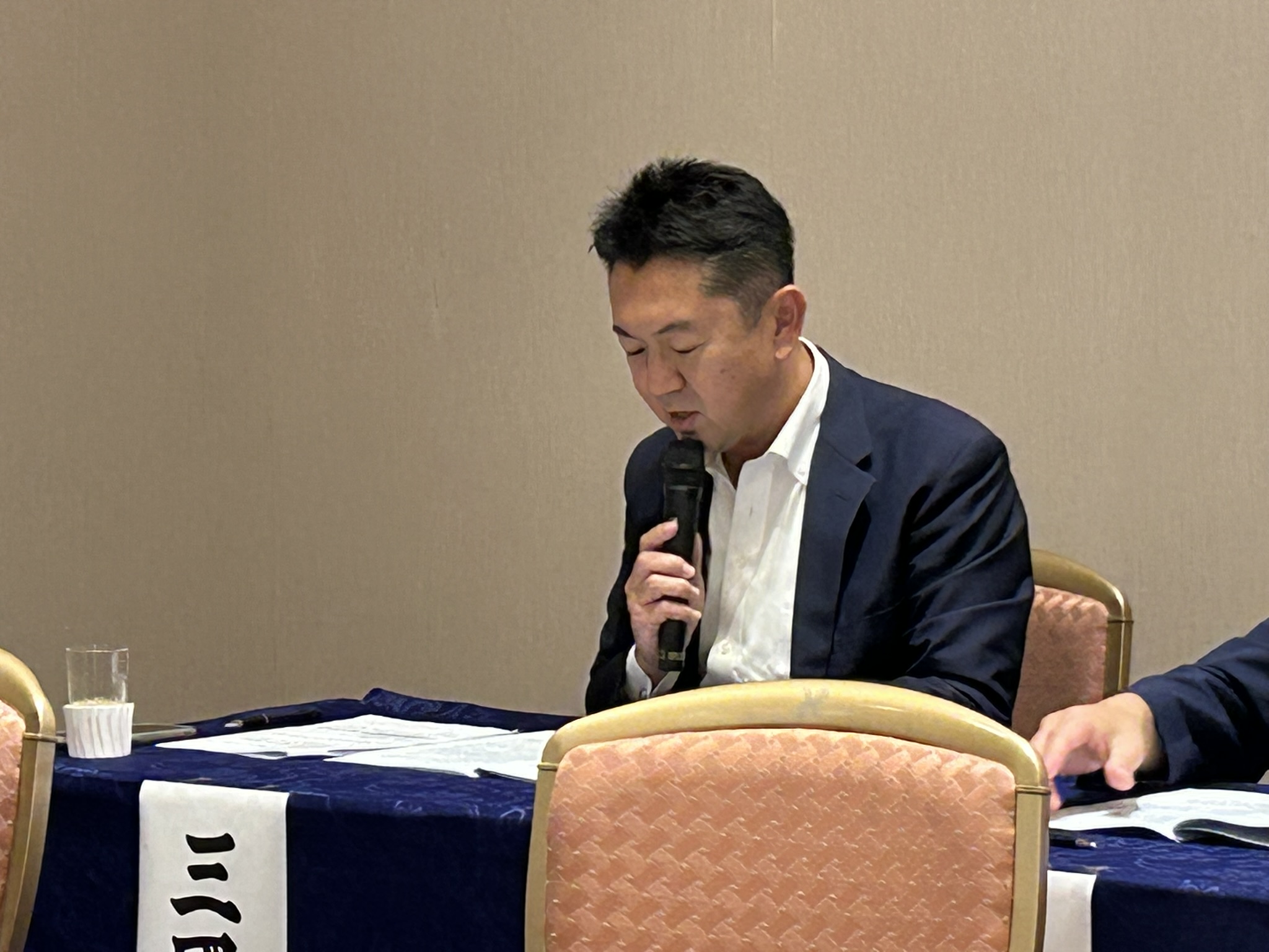 と回答し、幹事会や会員との情報共有の場を調整していく考えを示しました。